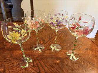 4 Hand Painted Crystal Wine Goblets Floral Motif Glasses 9.5” High$25Yonkers, NY