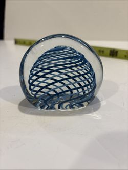 Vintage Signed McIlhenny 1987 Glass Paperweight Blue and Light Blue Swirl Pattern.$35Yonkers, NY