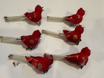 (6) Vintage Flocked Red Bird Clip-On Christmas Ornaments 1960’s $35Yonkers, NY