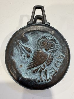 Vintage Bronze / Brass? Spring Clip Letter Clip with Athena Owl Parthenon $30Yonkers, NY