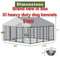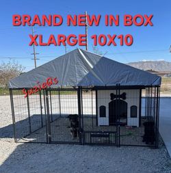 New In Box! Xlarge Heavy Duty Dog Kennel Just Under 10'x10'Swivel Feed Door & Bowls/ A Frame Roof & Tarp Reinforced Iron Animal Cage Corral De Mascota$380Victorville, CA