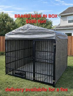 Brand new in box! Large Heavy duty dog kennel right under 7'x7', swivel feed door & bowls, roof top tarp & adjustable wrap around canopy thick reinfor$280Bloomington, CA