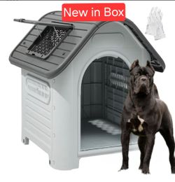Brand new in box Xlarge & tall dog house all weather raised dog igloo with foot porch, sky light, Ventalated windows casa de Mascota Add a bed for $25$100Fontana, CA