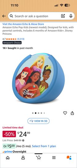 Amazon Echo Pop Kids (newest model), Designed for kids, with parental controls, Includes 6 months of Amazon Kids+, Disney Princess$10Tacoma, WA