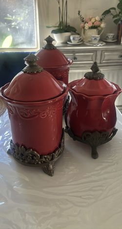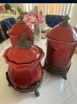 Set Of 3 Large Canisters Burgundy $40Santee, CA