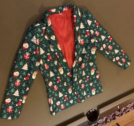 LADIES Women Green Santa Reindeer Snowman Christmas Holiday Suit Blazer Jacket 8 Emergency Party$10Palm Harbor, FL