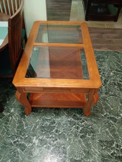Nice Real wood Coffee Table With Glass Top With Matching End Tables $80Haines City, FL
