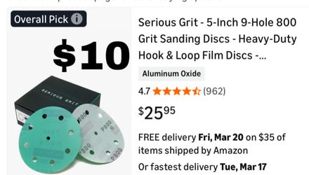 Serious Grit 5 Inch - 9- Hole 800 Grit Sanding Discs $10San Bernardino, CA
