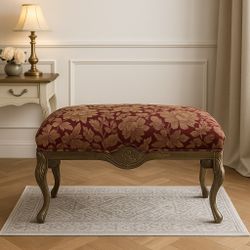 Beautiful French-style bench with carved legs and rich burgundy floral upholstery. Perfect as an entryway seat, bedroom accent, or vanity stool. The c$99Miami, FL