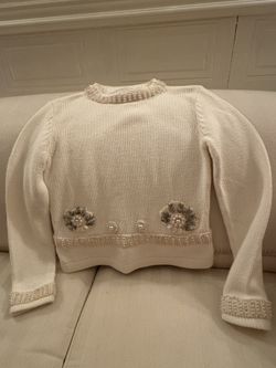 Women’s Petite Small Liz CLAIRBORNE Ivory Sweater With Floral & Pearl Embellishments$13Allentown, NJ