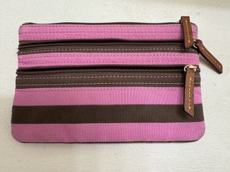 Women’s Dooney & Burke Cosmetic bag/clutch pink and brown with 3 zip compartments$18Trenton, NJ