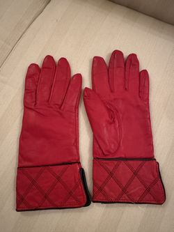 Women’s Small Genuine Leather Red Gloves With Quilted Black Line Cuffs$18Allentown, NJ