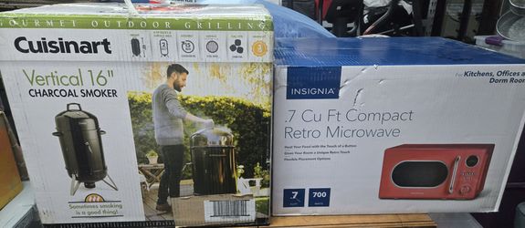 CUISINART Vertical 16" Charcoal Smoker & INSIGNIA .7cu FT Retro Microwave NEW$80Beaumont, CA