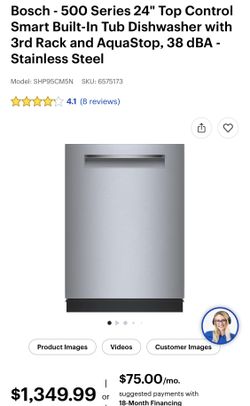 Bosch-500 Series 24” Top Control Smart Built-In Tub Dishwasher With Third Rack And Aquastop$550Concord, NC