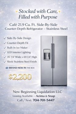 Cafe- 21.9 Cu. Ft Side-By-Side Counter Depth, Customizable Stainless Steel Refrigerator$2,200Concord, NC