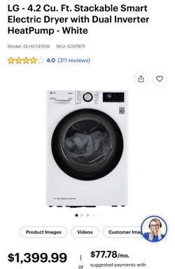 LG- 4.2 Cu. Ft. Stackable Smart Electric Dryer With Dual Inverter Heat Pump.$600Concord, NC