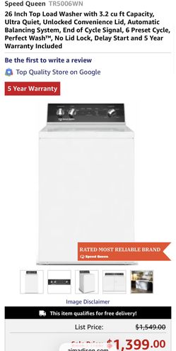 Speed Queen 27 Inch Top Load Washer With 3.2 Ft.³ Capacity Ultra Quiet$700Concord, NC