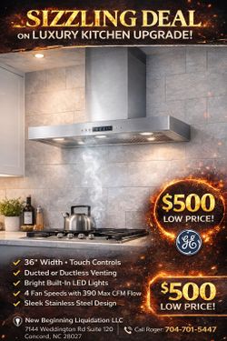 GE 36 Inch Externally, Vented And Recirculating Wall Range Hood Stainless Steel$500Concord, NC