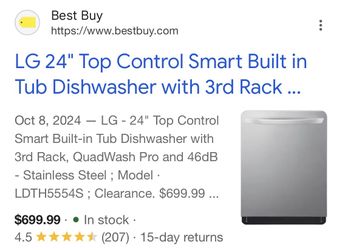 LG 24” Top Control, Smart Built-In Tub Dishwasher With Third Rack$375Concord, NC
