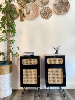Black Cane Accent Cabinet with Drawer – Modern Boho Style$180Greensboro, NC