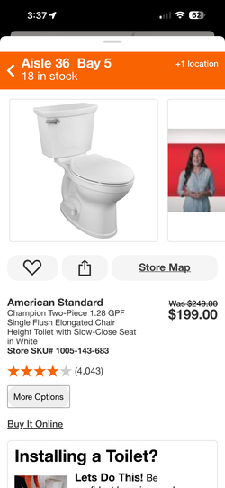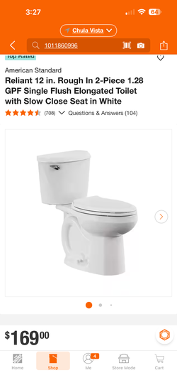 American Standard Champion Two-Piece 1.28 GPF Single Flush Elongated$100Chula Vista, CA