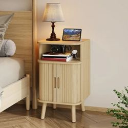 Mid-century Modern Nightstand with Charging Station, Wood Fluted Tall End Table with Storage$60El Monte, CA