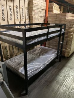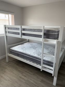 Twin over full bunk bed. Available in espresso and white. Tax included. Free local delivery. $350 for bunk bed only. $550 with mattresses. Assembly r$350Montebello, CA
