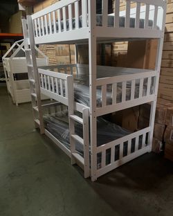 Triple bunk bed. Available in white & espresso. Assembly required. Assembly not included. Taxes included. Free delivery. Bunk bed only-$450 Bunk bed $450Montebello, CA