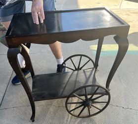 Vintage Mahogany Tea Cart / Bar Cart w/ Wheels – Queen Anne Style Serving Trolley$225West Covina, CA
