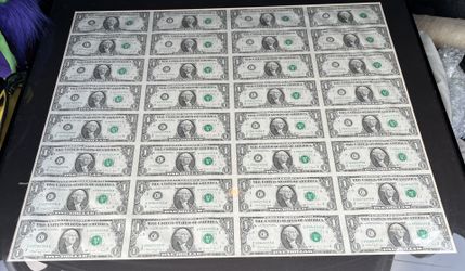 Series 1988A $1 Uncut Currency Sheet of 32 Notes – BEP Framed – Philadelphia (C Block)$150Corona, CA