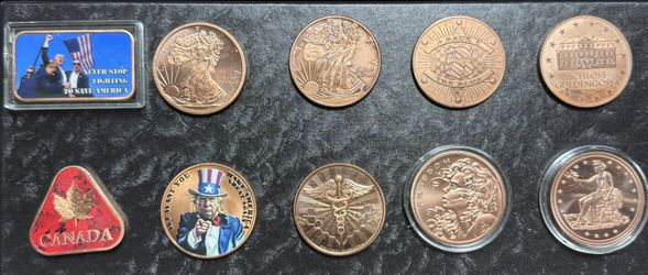 .999 Fine Copper Round & Bar Lot(10 Pieces) USA Eagle, Silver Shield, Novelty…$65Lakewood, CA