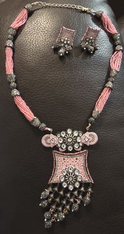 Elegant Pink & Silver Kundan Jewelry Set (Necklace + Earrings)$35Sugar Land, TX