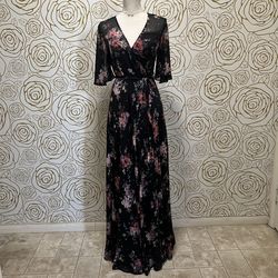 Bloomingdales Aqua Black Floral Flowy V-Neck Maxi Wrap Dress $25Bonita, CA