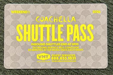 Coachella 2026 Weekend 1 Shuttle Pass$170Los Angeles, CA