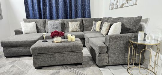 ππ XL 4 Piece Grey Rooms To Go Sectional With Ottoman$750Azalea Park, FL