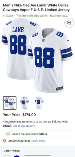 NWT Men's XL Nike CeeDee Lamb White Dallas Cowboys Vapor F.U.S.E. Limited Jersey$100Lynwood, CA