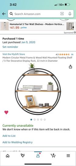 Modern Circular Metal Frame & Wood Wall Mounted Floating Shelf / 3-Tier Decorative Display Rack, 22-Inch in Diameter$20Norwalk, CA