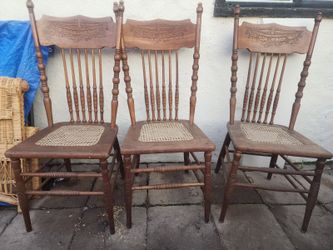 3 Vintage Oak Pressback Chairs With Cane Seats $45Bakersfield, CA