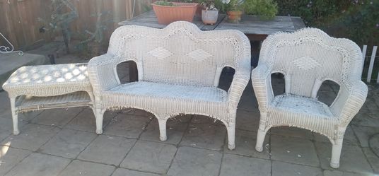 SoldPatio Furniture 3 Piece White Wicker Sofa Chair Table$45Bakersfield, CA