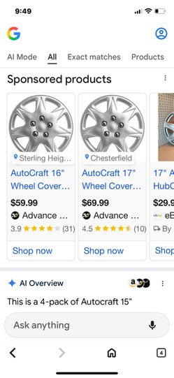 Autocraft Wheel cover three of them 25 each$75Macomb, MI