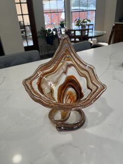 Vintage 1950s Art Glass vase coil stem hand blown Brown And Orange Tones $35Irving, TX