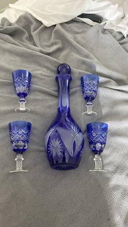 Vintage” cobalt blue Bohemian decanter with 4 glasses.$140Sacramento, CA