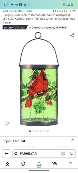 Solar Redbird Lantern $15Charlotte, NC