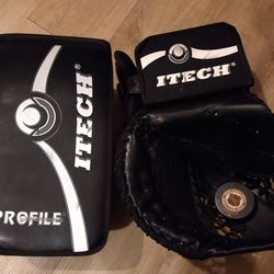 ITECH PROFILE 3000 BLACK WHITE & SILVER SENIOR MATCHING HOCKEY GOALIE BLOCKER & CATCHER!!! RARE!!! LIKE NEW CONDITION!!! ๐ฅ
