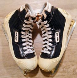 BAUER SUPREME 1000 SIZE 9.5 SENIOR ICE HOCKEY GOALIE SKATES WITH ICM COWLINGS!!! SHOE SIZE 11! DON'T MISS OUT! ๐๐ฅ