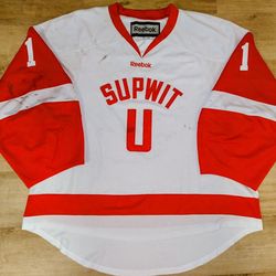 REEBOK SUPWIT U AL KAHOLIK #1 SIZE 58G GOALIE CUT HOCKEY JERSEY!!! DETROIT RED WINGS COLORS! DON'T MISS OUT! ๐คฃ๐ฅ
