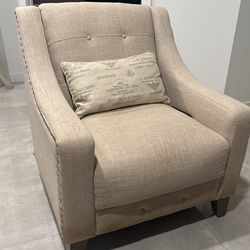 Set Of 2 Linen Nailhead Arm Chairs Greige Legs With Pillow$88Boca Raton, FL