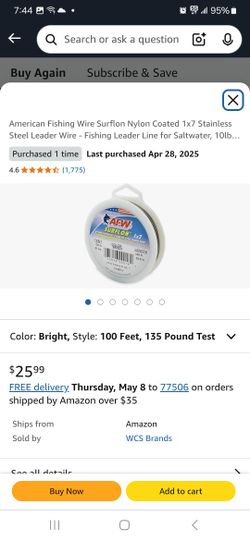 135 Lb Test Nylon Coated Leader Wire New 100 Ft$28Pasadena, TX