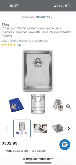 Elkay ECTRU12179TC Crosstown 13-1/2" Undermount Single Basin Stainless Steel Bar Sink with Basin Rack and Basket Strainer - Stainless Steel$150Gilbert, AZ