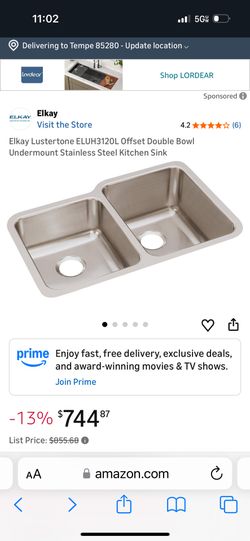 Elkay Lustertone ELUH3120L Offset Double Bowl Undermount Stainless Steel Kitchen Sink$350Gilbert, AZ